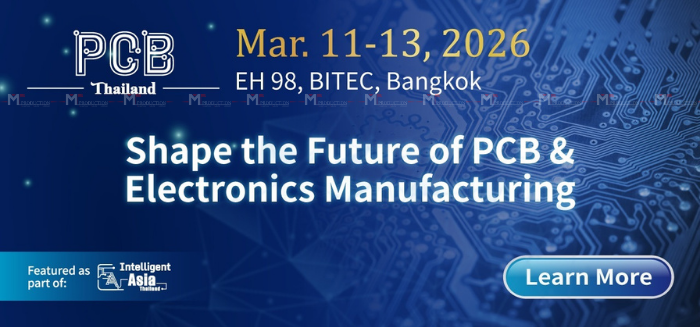 Intelligent Asia Thailand 2026 là nền tảng chuyên nghiệp lớn nhất Thái Lan dành cho chuỗi cung ứng điện tử và sản xuất thông minh, tập trung vào 5 chủ đề chính: Tự động hóa, Pin & nguồn điện, sản xuất điện tử, Màn hình quang điện tử thông minh và PCB.