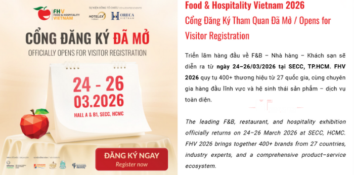 Trong bối cảnh ngành F&B và hospitality Việt Nam đang bùng nổ (dự báo tăng trưởng mạnh nhờ du lịch phục hồi và tiêu dùng nội địa), Food & Hospitality VietNam 2026 là cầu nối lý tưởng để doanh nghiệp kết nối đối tác, tìm nguồn cung mới và đẩy mạnh thương hiệu.